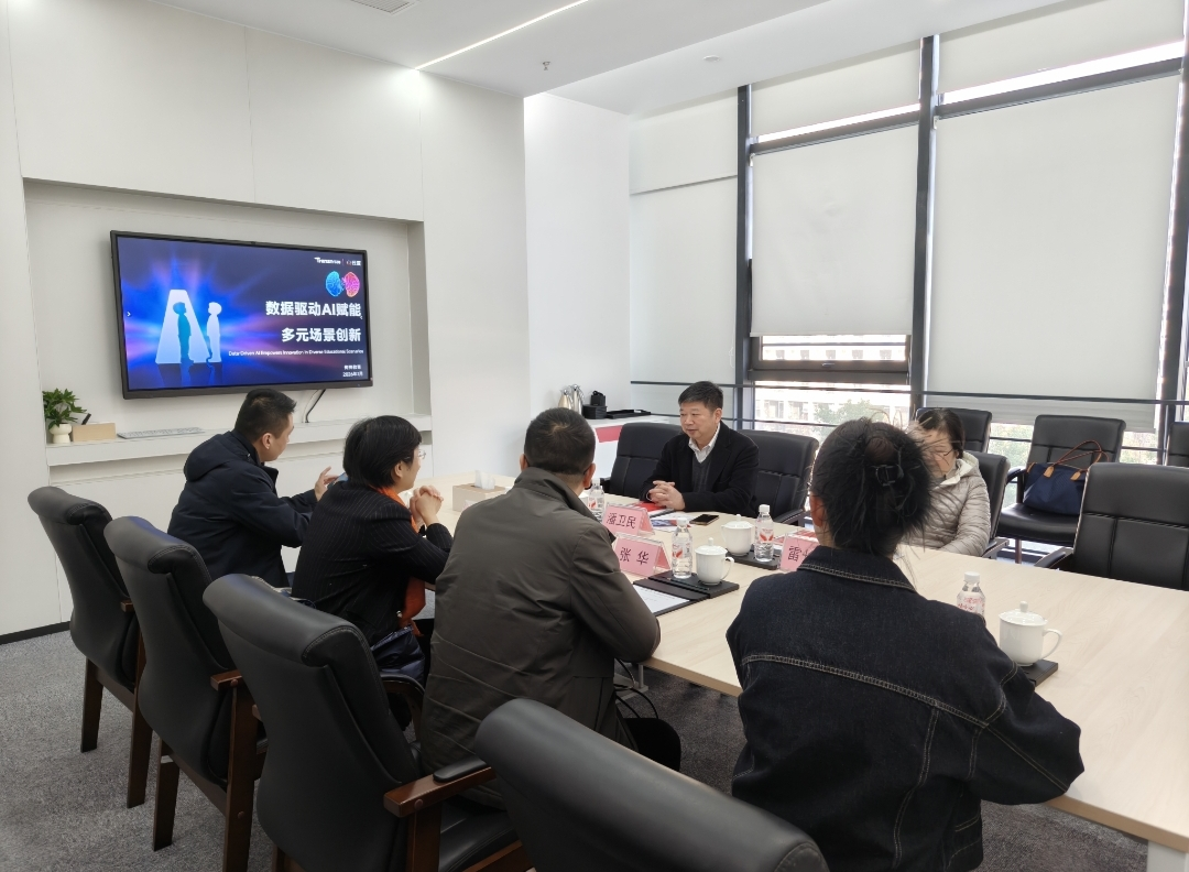 2026年1月13日,我院潘卫民院长到达武汉传神语联网网络科技股份有限公司进行校企合作洽谈。传神语联副总裁闫栗丽、教育事业部总经理张华以及教育事业部资源总监靳伟接待了潘卫民院长并参加了洽谈会。