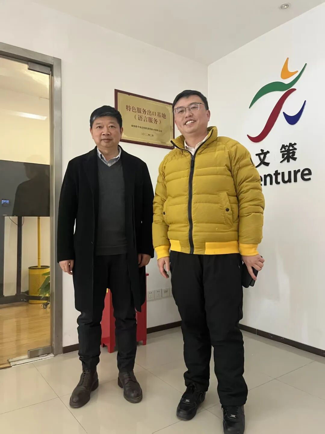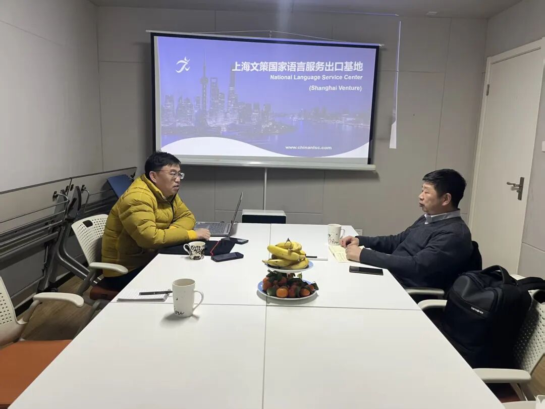 2026年1月23日上午,我院潘卫民院长赴上海文策国家语言服务出口基地开展合作洽谈。上海文策国家语言服务出口基地总经理毛隽先生热情接待了潘院长,双方围绕语言服务领域校企协同发展展开深入交流,为后续全方位合作奠定坚实基础。