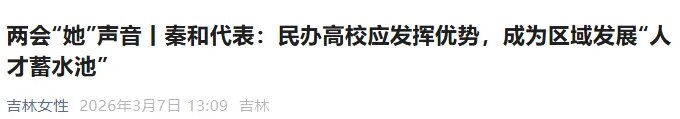 3月7日,经济日报、中国新闻网、中国城市报、最高人民检察院视频号、中国吉林网、“吉林发布”“吉林妇女”公众号等媒体平台报道了全国人大代表秦和校长的两会建议。